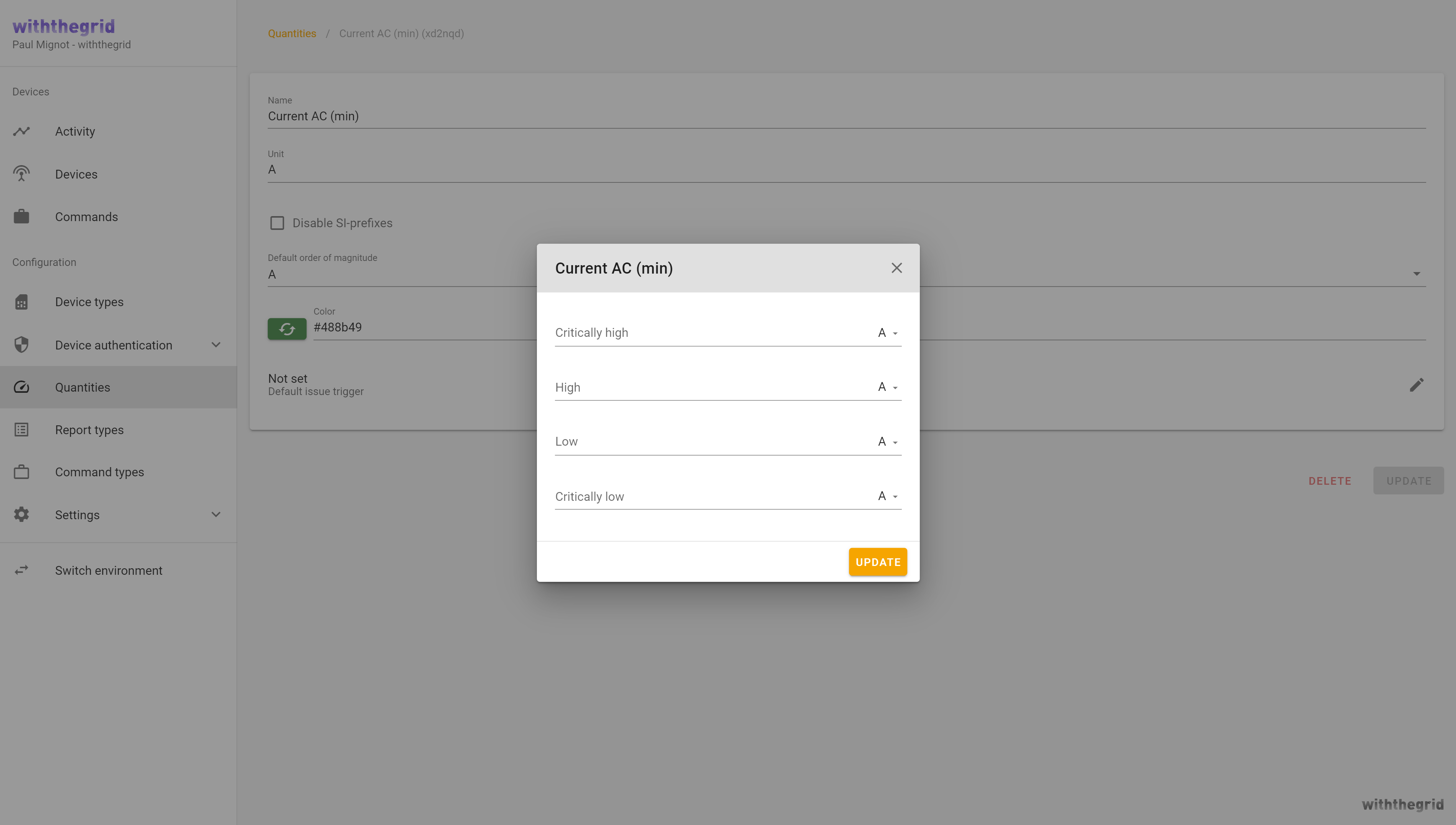 All the quantities used by the different devices are listed in this overview. It is possible to apply pre-defined issue triggers which will be automatically added to a monitoring environment when a device is claimed.