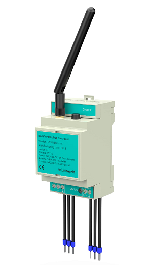 This device is placed at rectifier locations. The required power input is 9-36V DC (15W), provided by an external power source that is connected to the mains grid (230V).