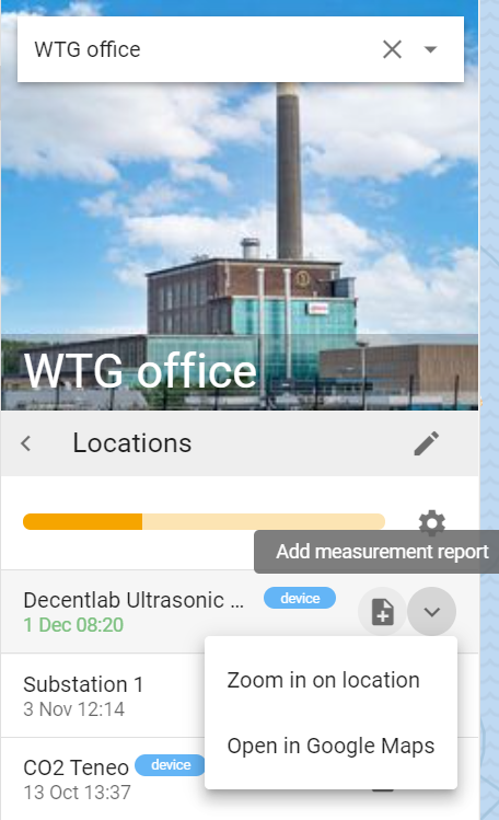 The Withthegrid platform is accessible via tablet or mobile phone and is ideal to use in the field. You can record a measurement in a condition report. The best way to access this is through the group overview as you have all the locations in the order that you want to visit them. A manual measurement can be directly accessed through a single button. There is a also google maps link for each location to when opened on your tablet or phone you can obtain (driving) instructions to reach the location.